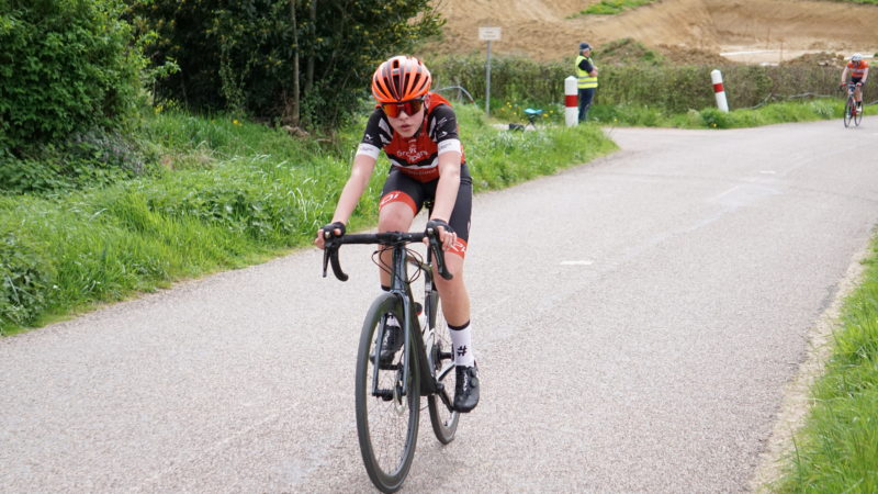 Les minimes ont pris le départ avec la catégorie 6 car il n’y avait que 2 minimes pour effectuer 8 tours d’un circuit vallonné de 3.4km avec l’arrivée en côte.