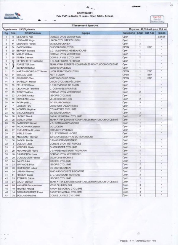 Le prix de la Motte Saint Jean disputé sur un parcours Exigeant de 7kms à parcourir 14 fois soit 99kms