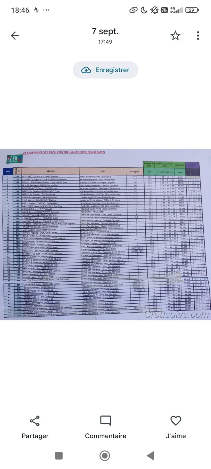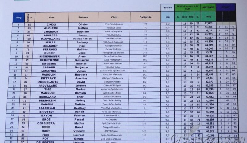 Dimanche 7 septembre a eu lieu le CLM de Saint-Martin en Bresse avec un parcours de 9,4km en individuel (101 partants) et de 19km en gentleman (47 équipes).