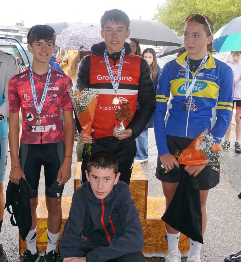 L’épreuve n’avait pas forcément bien commencé pour notre équipe creusotine composée de Néo et Jérémie Dérangère qui avaient fait le déplacement avec Baptiste Charles puisqu’une première échappée de 5 coureurs réussit à fausser compagnie au peloton dès le début de l’épreuve .