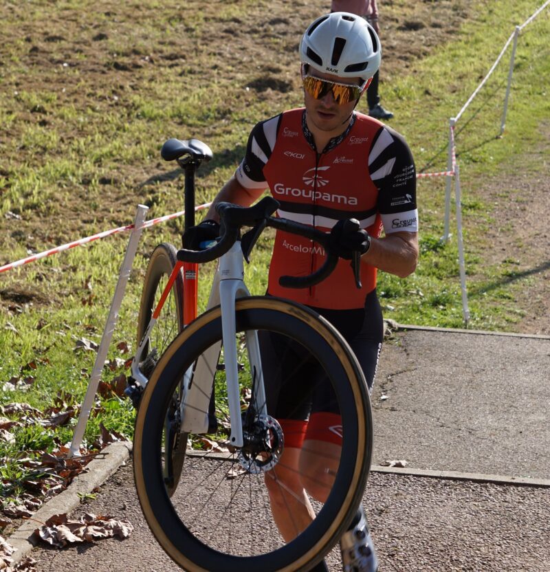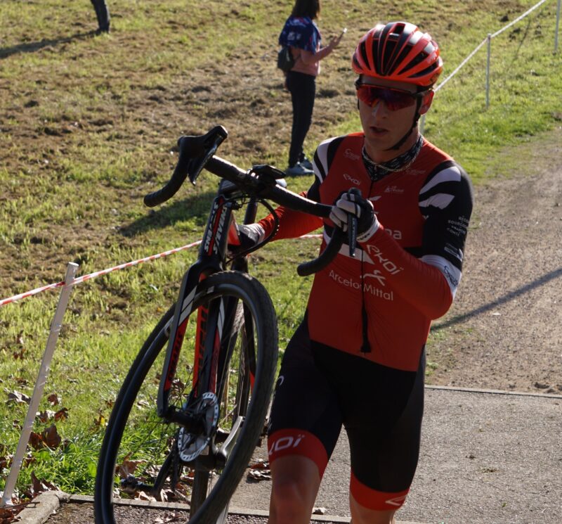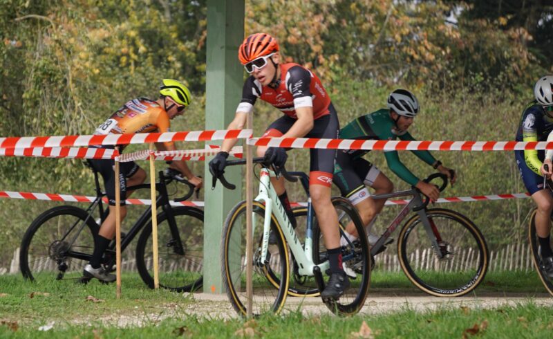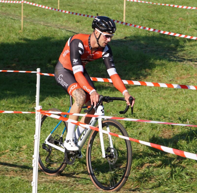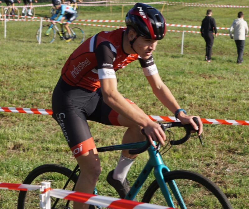 Aujourd’hui sous le soleil Hugo était engagé en catégorie U17 à la première manche de la coupe de Bourgogne Franche Comté aux Prés Saint Jean à Chalon sur Saône qui rassemblait les 35 meilleurs cyclocross-man de la région.