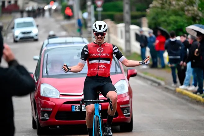 Concernant la course beaucoup de coureurs voulaient s’échapper en début de course mais ça ne durait pas longtemps. À la 40eme minute je fais la relance sans ambition particulière mais ça casse nous sommes plus que 2. Nous avons creusé l’écart et maintenu toute la course aux alentours de 30s grâce aux gars qui ont extrêmement bien géré le peloton et je les remercie énormément pour tout ce qu’ils ont fait.